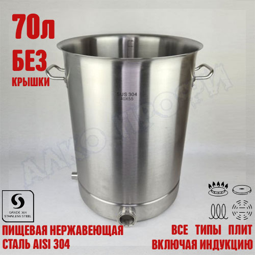 Перегонный куб из пищевой нержавеющей стали AISI 304 кастрюльного типа. Используется с дистилляторами (самогонными аппаратами) в качестве емкости нагрева спиртосодержащих жидкостей.