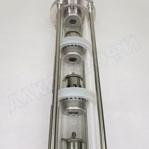 Колпачковая колонна (флейта) 1,5" представляет из себя флейту с тарелками и стёклами 2" и с фланцами с выходом 1,5. То есть вы получаете размер и мощность колонны 2", но с выходом 1,5". Кламп 1,5" универсален и совместим с аппаратами любого производителя.