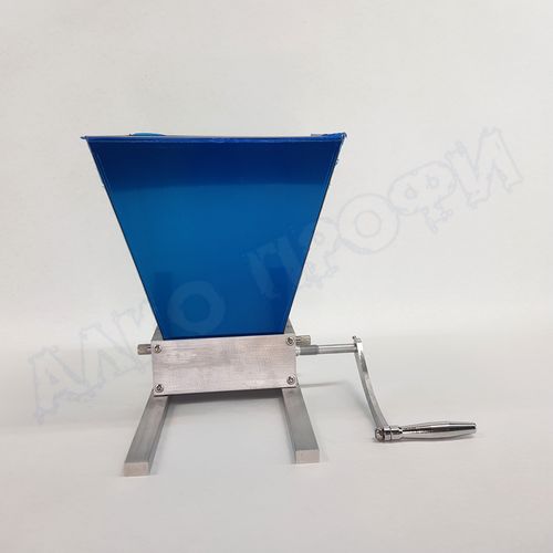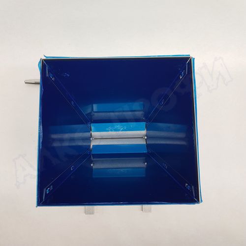 Мельница оснащена вместительным бункером, который изготовлен из нержавеющей стали. Синий цвет - это защитная плёнка. Защищающая поверхность от царапин при транспортировке.