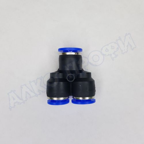 Тройник для соединения трёх полиуретановых трубок соответствующего наружного диаметра. Имеет цанговые быстросъёмные соединения.